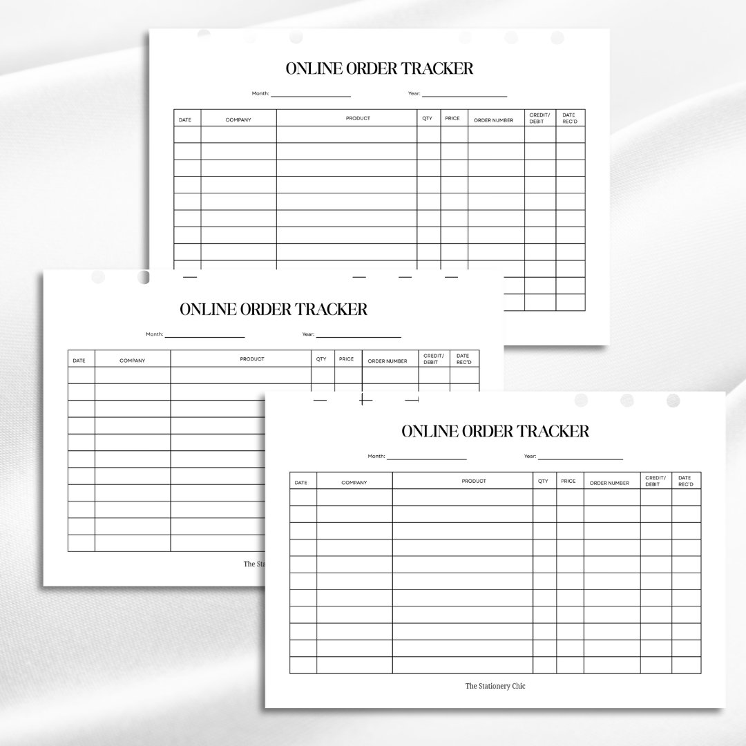 Designed to help you track every order from checkout to delivery, this insert is perfect for busy planners, online shoppers, small business owners, and anyone who loves keeping their life neatly documented.
