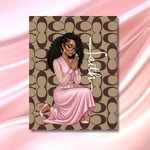 Featuring a graceful African American woman on bended knee in prayer, this design blends faith, femininity, and quiet strength. The airbrushed cartoon illustration paired with a soft luxury-inspired background makes this dashboard both spiritually grounding and visually elegant.
